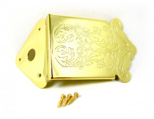 The purpose of this article is to discuss some of the methods you can use to decorate your builds, and wherever possible to use hardware that is both decorative AND useful – using a decorative brass hinge as a tailpiece, for instance. Where appropriate we’ll link to items that we have for sale in our web shop that you can use to help dress up your own builds. We’ll divide the CBG up into four basic sections: the headstock, neck, sound box and tail/base, and discuss some ideas and options for each in turn. Keep in mind as you go along that many of the decorative parts mentioned in this article are available at great prices in our C. B. Gitty Crafter Supply Web Store.