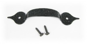 Sometimes the area where the neck joins/enters the sound box can end up with some uneven/unsightly edges. This is a perfect place to apply some creativity to cover the rough area and improve the overall appeal of the instrument. For the top of the box, a brass flat door pull can go very well here, as can some of the rusted tin accents we sell in our web store. You could also cut a thin piece of hardwood and wood-burn/carve it and then place it over this area, or just attach it without decoration. For the sides of the box where the neck goes through, you can also form a sort of “heel” or collar out of wood (or other material) to go around the neck where it enters the box. This can help cover up the uneven edges, as well as help reinforce the neck.