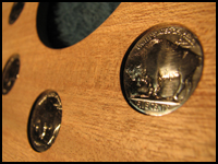 Setting a vintage coin into your headstock can be a very cool and unique accent, as shown in the photo of one of our builds. For many people CBGs are seen as a throwback to an earlier era anyway, so including some vintage coins from that era (for the United States think Indian head or wheat pennies, buffalo nickels, mercury dimes, etc.). You can get away with using very worn coins that don’t have much inherent value (look for coins listed as “cull” or in “fair” or “almost good” condition), and a quick turn on the buff wheel can polish them