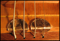 However, you will find that if you don’t add something for protection, once tuned to pitch the strings will cut into the wood. This is a good place to make use of some small bushings, rivet casings or other metal hardware. Not only do they protect the wood from the strings, but they also add a nice decorative touch at the base of the neck. Other builders have used items like brass door pulls, inset coins and brass rod, for this purpose.