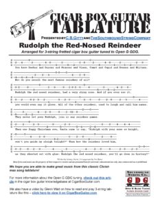 Click this link or the image below to view the printable PDF: Rudolph the Red-Nosed Reindeer 3-string Cigar Box Guitar Tablature PDF